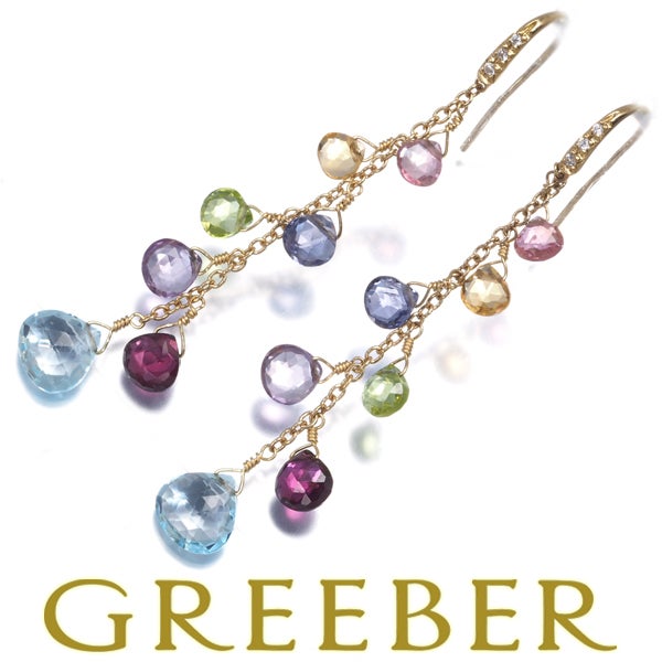 【ポイントアップ対象商品】マルコビチェゴ ピアス トパーズ ガーネット アメジスト ペリドット トルマリン ダイヤ ダイヤモンド パラダイス K18YG【中古】BLJ/GENJ