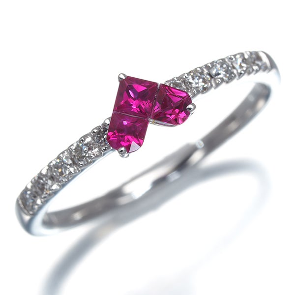 色美しい輝きを放つルビーの彩りを、愛らしいハートモチーフに飾った スタージュエリーのミステリアスハートリングです。
