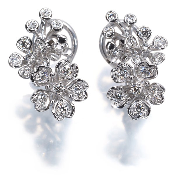 立体的に演出された繊細なフラワーモチーフと共にミキモト厳選ダイヤモンドの輝きを飾ったブルームコレクション。耳元で優雅な煌めき咲き誇る逸品を是非どうぞ。