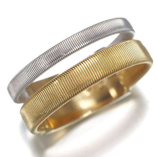 繊細なゴールドの輝きを披露する マルコビチェゴならではの美しいジュエリー。こちらは代表作の一つ マサイコレクションの一品。職人の手作業による芸術的なゴールドの艶やかな煌めきが上品な輝きで装いを演出してくれます。
