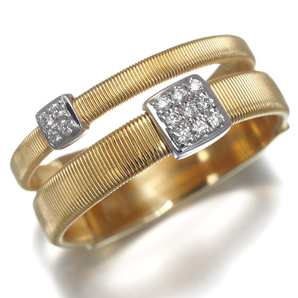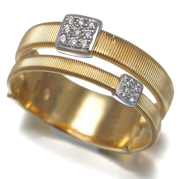 繊細なゴールドの輝きを披露する マルコビチェゴならではの美しいジュエリー。こちらは代表作の一つ マサイコレクションの一品。職人の手作業による芸術的なゴールドの艶やかな煌めきと共に 飾られた厳選ダイヤモンドが上品な輝きで装いを演出してくれます。