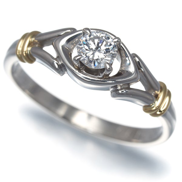 【ポイントアップ対象商品】ディオール リング ダイヤ ダイヤモンド 0.2ct程 ソリティア コンビカラー 10号 Pt900/K18YG 【中古】BLJ/GENJ