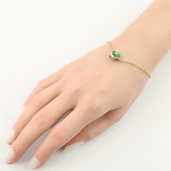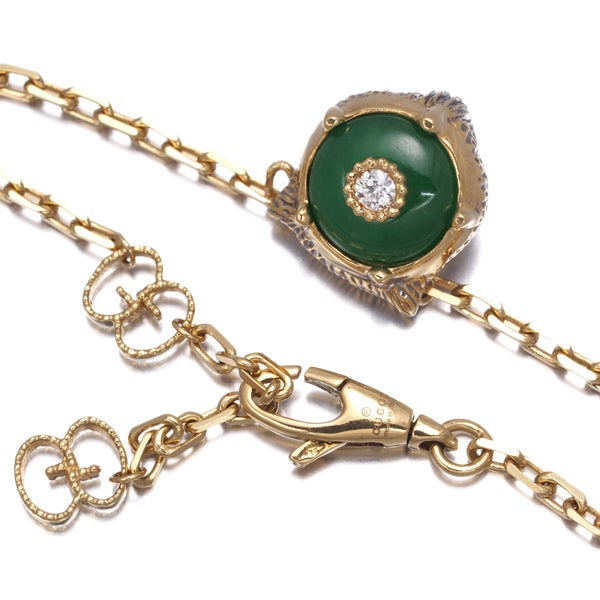 【スプリングキャンペーン!11%対象商品】グッチ ブレスレット ダイヤ ダイヤモンド 翡翠 ヒスイ ルマルシェデメルヴェイユ キャットヘッド K18YG 【中古】BLJ