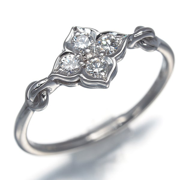 4石の厳選ダイヤを飾った独創的なフラワーデザインが美しい カルティエのヒンドゥ ダイヤモンドリングです。