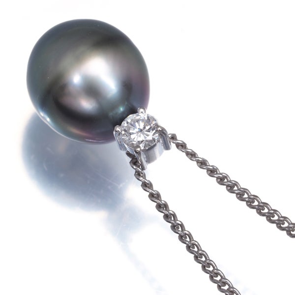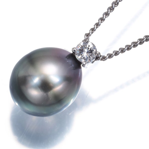 【スプリングキャンペーン!11%対象商品】TASAKI タサキ ネックレス ブラック パール 真珠 9.5mm ダイヤ ダイヤモンド 0.11ct Pt900/Pt850 【中古】BLJ