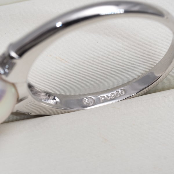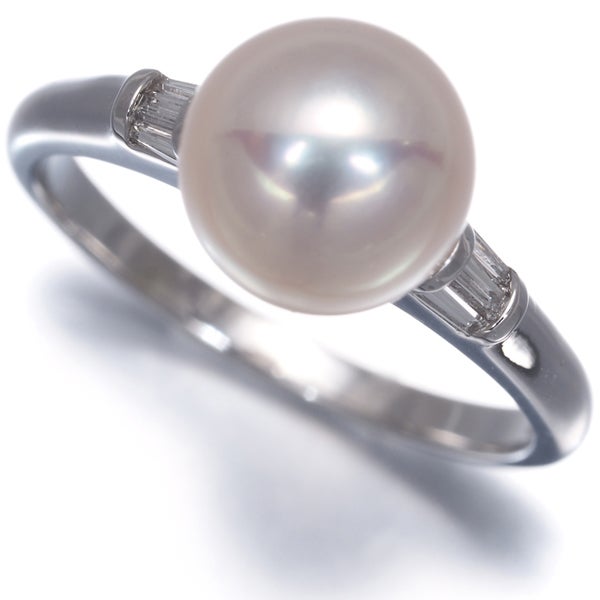 【スプリングキャンペーン!11%対象商品】TASAKI タサキ リング パール 真珠 8.5mm ダイヤ ダイヤモンド 0.10ct テーパーカット 12号 Pt900 【中古】BLJ