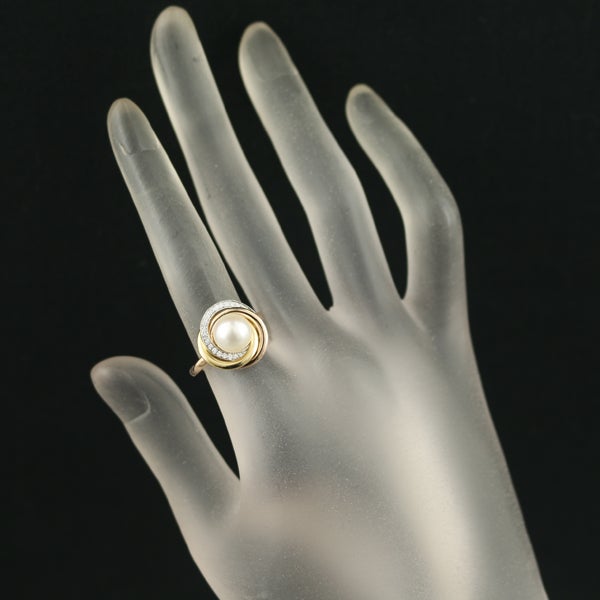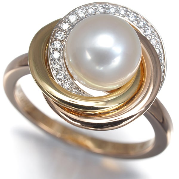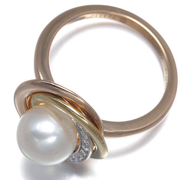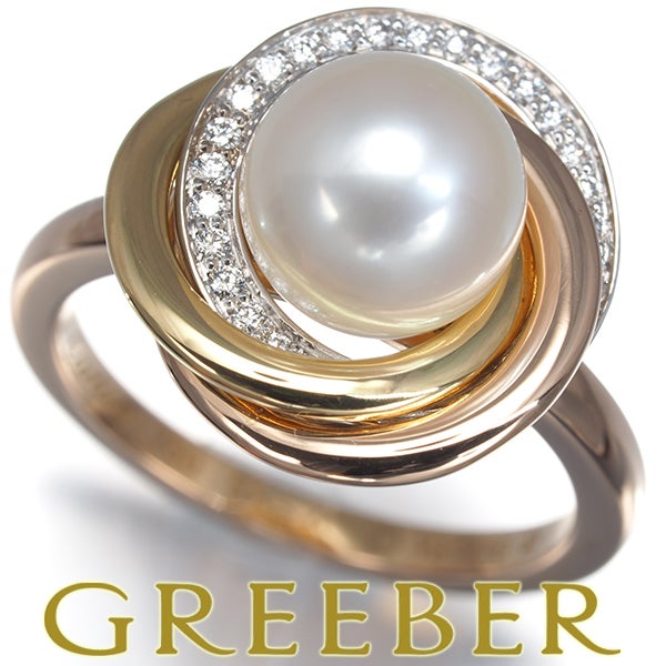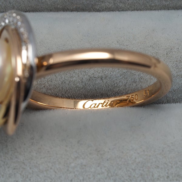 【ポイントアップ対象商品】カルティエ リング パール 真珠 8.0mm ダイヤ ダイヤモンド トリニティ スリーカラー 51号 K18YG/WG/PG 保証書【中古】BLJ