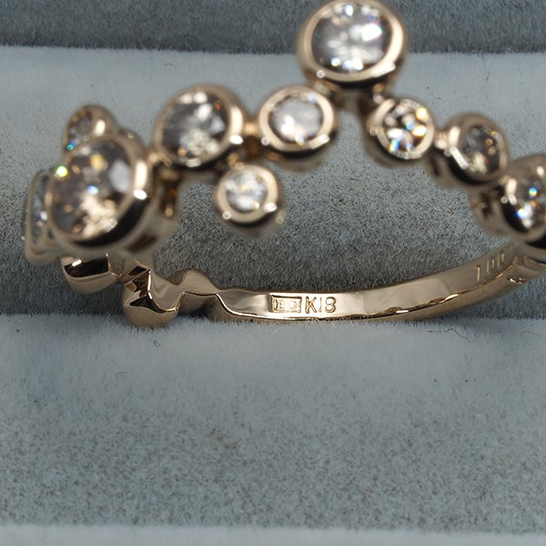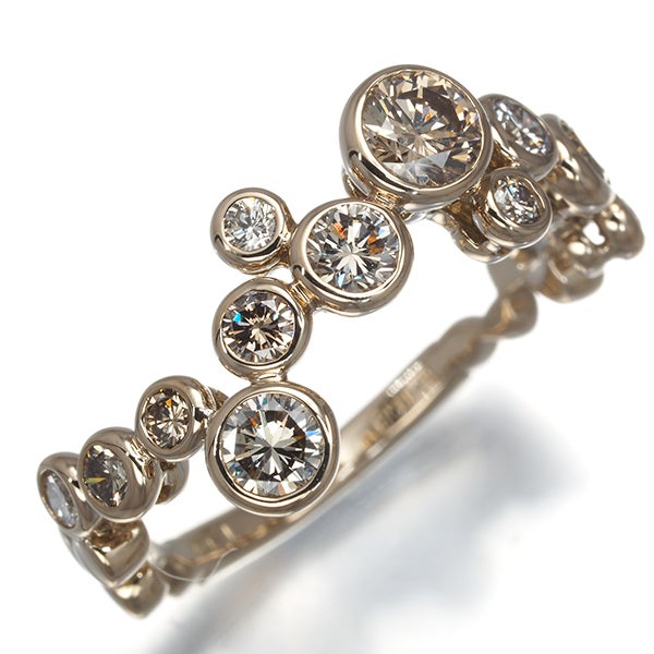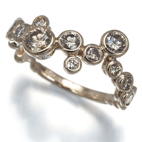 その名の通り、厳選したブラウン&クリアダイヤをベゼルセッティングしてリズミカルな輝きを演出した カシケイのベゼル ダイヤモンドリングです。