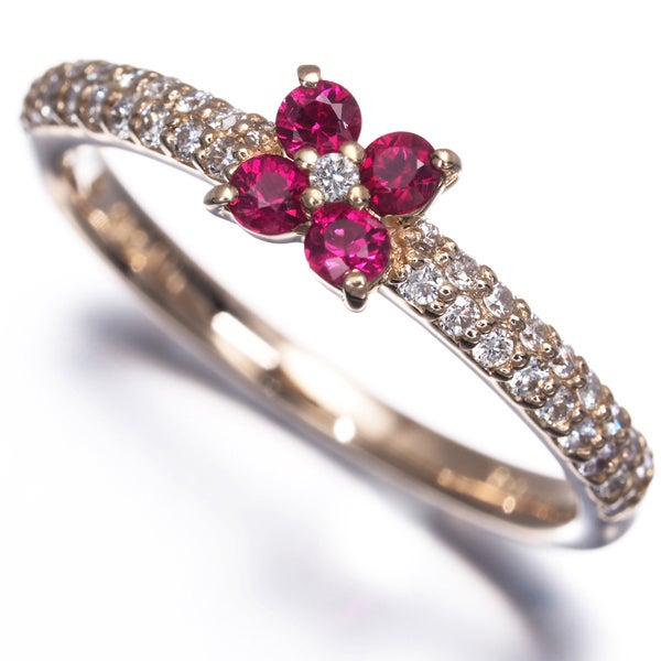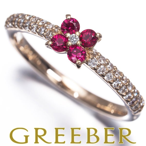 ポンテヴェキオ リング ルビー 0.18ct ダイヤ ダイヤモンド 0.18ct フラワー 9号 K18YG 【中古】BLJ