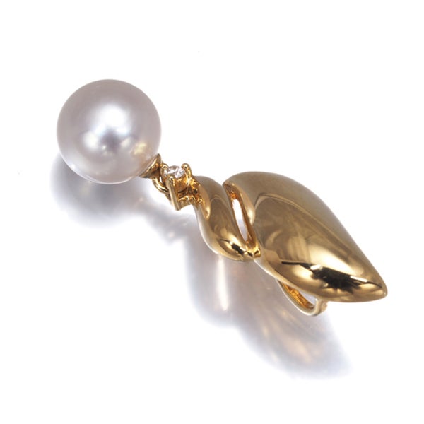 フェザーを思わせる優美なフォルムに タサキ厳選のアコヤ真珠が美しく揺れ輝くペンダントトップ。朝露のように瑞々しい上質ダイヤモンドの煌めきが上品に飾られています。