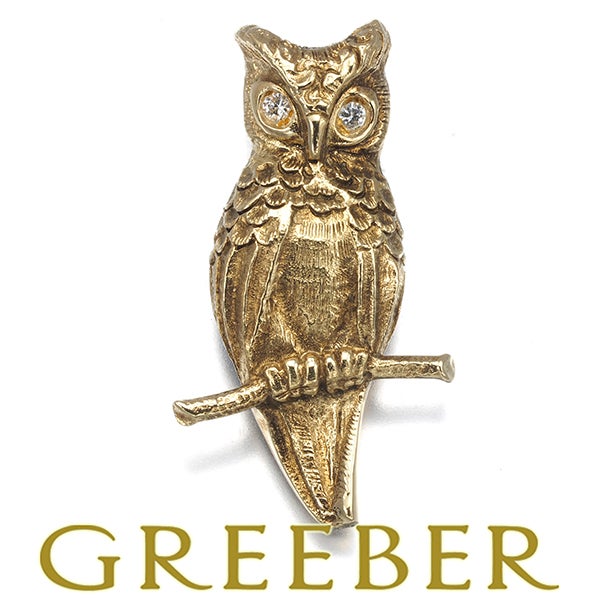 【スプリングキャンペーン!11%対象商品】ミキモト ブローチ ダイヤ ダイヤモンド フクロウ アニマル ヴィンテージ K14YG 【中古】BLJ
