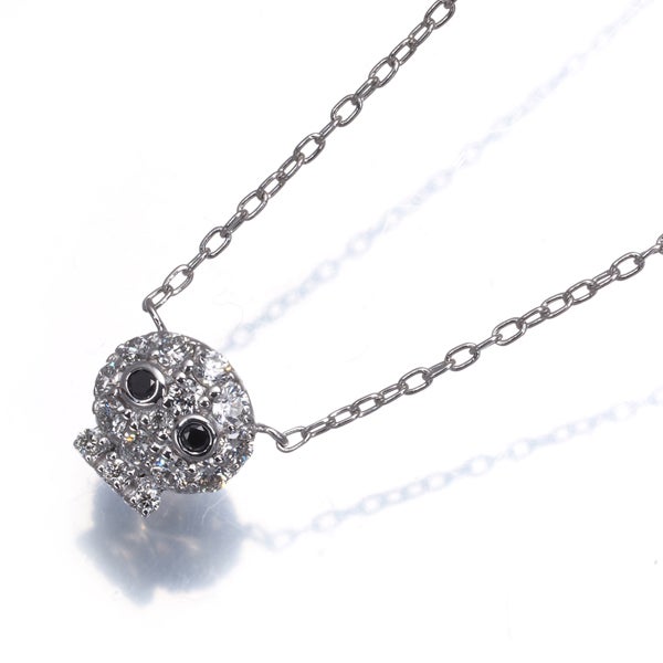 可愛らしいスカルモチーフへクリア&ブラックダイヤモンドの輝きをパヴェに飾ったポンテヴェキオの素敵なネックレスです。