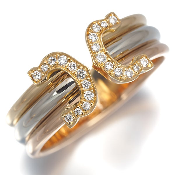 カルティエ リング ダイヤ ダイヤモンド 2C ドゥーブルC C2 スリーカラー SM 54号 K18YG/WG/PG 【中古】BLJ