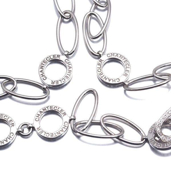 シャンテクレール チェーンネックレス ダイヤ ダイヤモンド オーバルリンク Yドロップ ロング 62cm K18WG 【中古】BLJ/GENJ