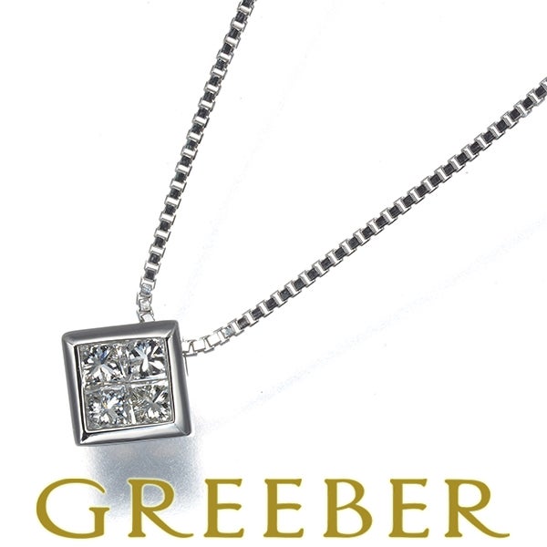 【スプリングキャンペーン!11%対象商品】ヴァンドーム ネックレス ダイヤ ダイヤモンド 0.20ct ミステリーセッティング スクエア Pt950/Pt850 【中古】BLJ/GENJ