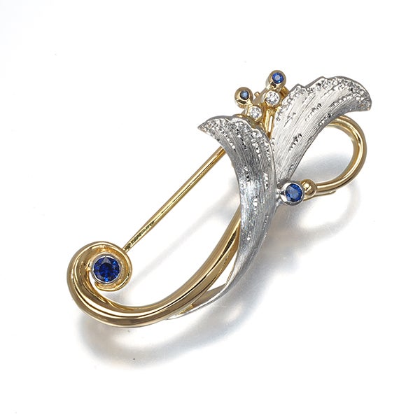 【スプリングキャンペーン!11%対象商品】石川暢子 2WAY ブローチ サファイア ダイヤ ダイヤモンド フラワー コンビカラー Pt900/K18YG 【中古】BLJ