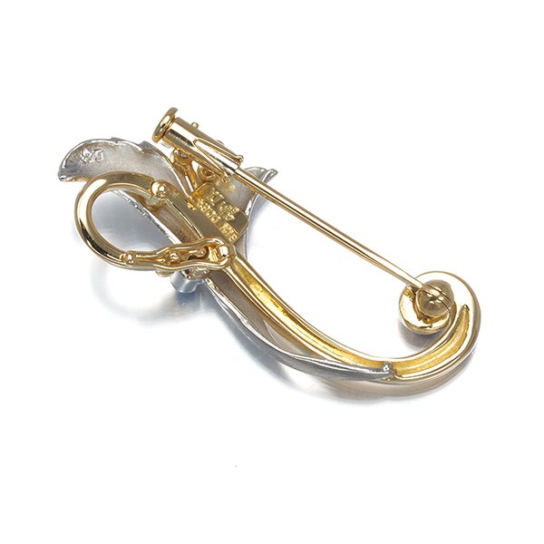 繊細緻密な彫金細工で数々の芸術的作品を生み出してきた 石川暢子さんならではの大変美しい逸品ジュエリー。厳選された宝石たちが優雅に煌めくフラワーモチーフのブローチです。蔓のようにデザインされたフープ(画像1枚目右上) は開閉式のため、お手持ちのペンダントトップやチャームを合わせてお楽しみいただけますよ。