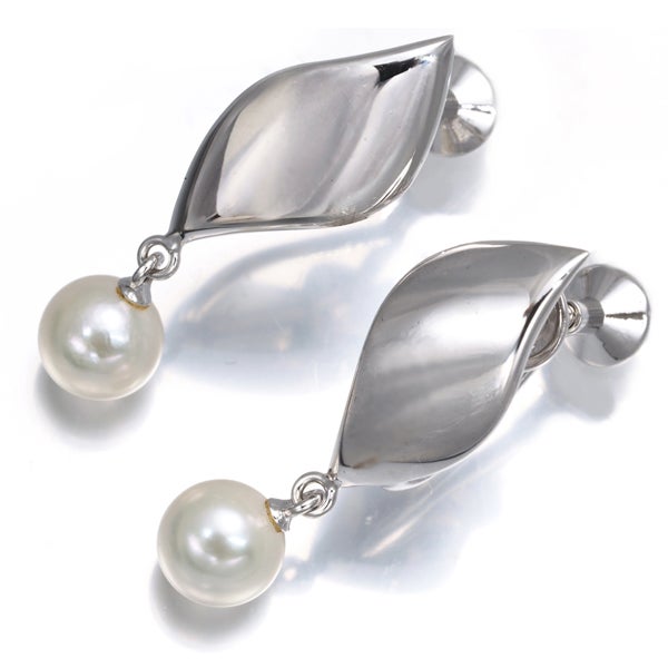 艶やかなシルバーの光沢美しいデザインと共に上質なテリ煌めきを魅せるパールを飾ったミキモトのイヤリングです。