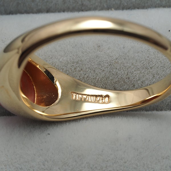 鮮やかな朱赤の輝きが装いを美しく彩る ティファニーの珊瑚リング。レアな逸品を どうぞお見逃しなく。