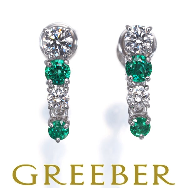 【スプリングキャンペーン!11%対象商品】ミキモト イヤリング エメラルド 0.36ct ダイヤ ダイヤモンド 0.42ct 揺れる K18WG 【中古】BLJ