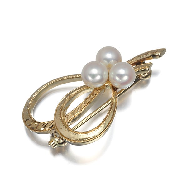 【ポイントアップ対象商品】ミキモト ブローチ パール 真珠 5.0mm リボン K14YG 【中古】BLJ