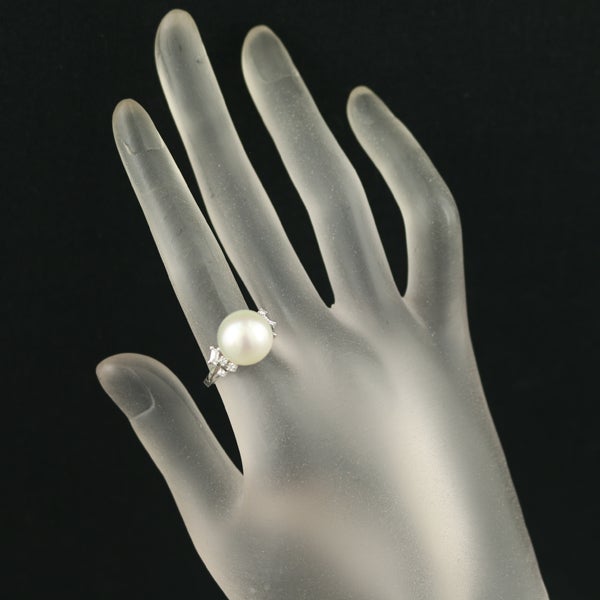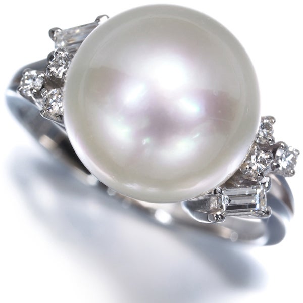 【ポイントアップ対象商品】ミキモト リング パール 真珠 11.5mm ダイヤ ダイヤモンド バゲット 2種カット 12号 Pt900 【中古】BLJ