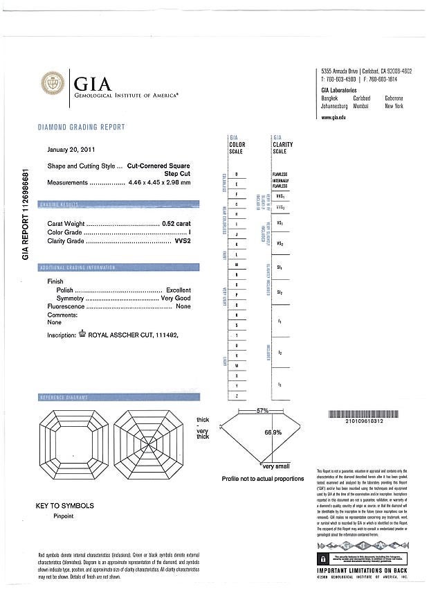 ロイヤルアッシャー リング ダイヤ ダイヤモンド 0.72ct アッシャーカット 11.5号 Pt950 箱/保×2/鑑【中古】BLJ/GENJ