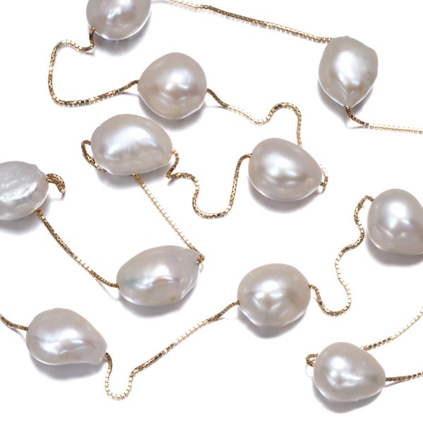 唯一無二のフォルムも美しいバロックパールを厳選。長さ85cmものロングレングスに贅沢に飾られたステーションデザインで 装いの胸元を優雅に輝かせてくれる タサキの美しいお品です。
