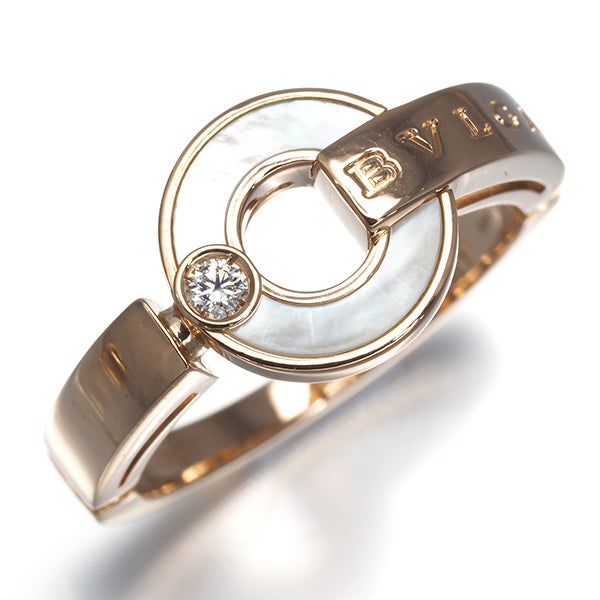 【ポイントアップ対象商品】ブルガリ リング シェル ダイヤ ダイヤモンド ブルガリブルガリ BB オープンワーク 54号 K18PG 【中古】BLJ