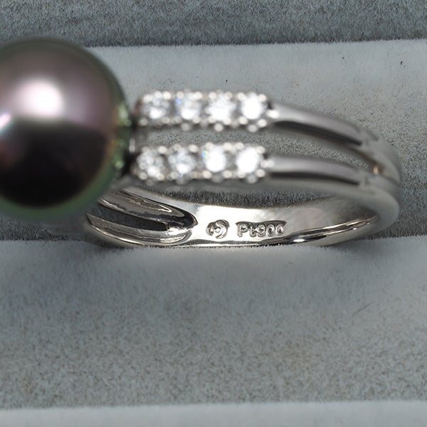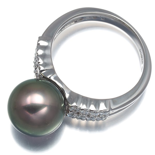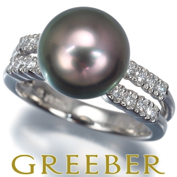 【スプリングキャンペーン!11%対象商品】TASAKI タサキ リング ブラック パール 真珠 10.6mm ダイヤ ダイヤモンド 0.32ct 13号 Pt900 【中古】BLJ