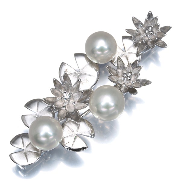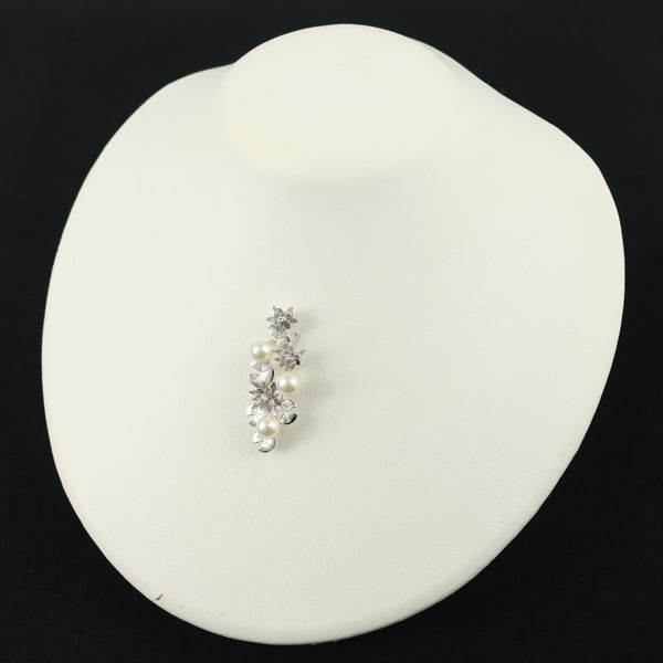 【スプリングキャンペーン!11%対象商品】TASAKI タサキ ブローチ兼ペンダントトップ パール 真珠 6.9-7.3mm ダイヤ ダイヤモンド 0.01ct 蓮 フラワー シルバー【中古】BLJ