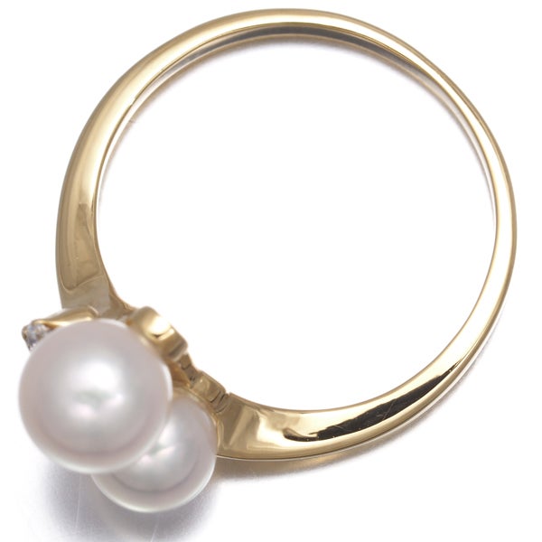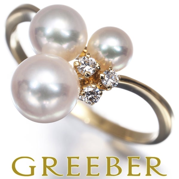 【ポイントアップ対象商品】ミキモト リング パール 真珠 3.8-5.6mm ダイヤ ダイヤモンド 7号 K18YG 【中古】BLJ
