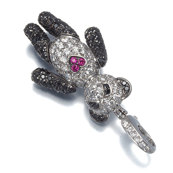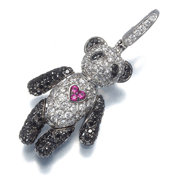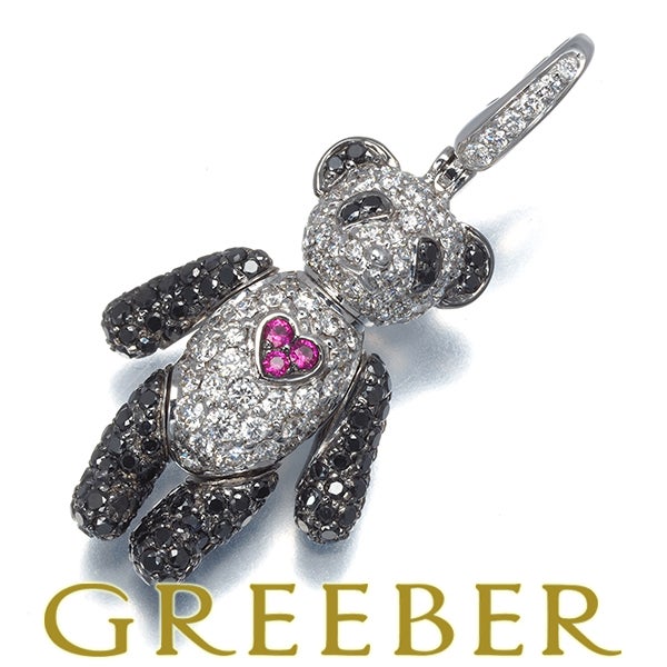 【ポイントアップ対象商品】キーリン ペンダントトップ ダイヤ ダイヤモンド 1.49ct ルビー ボボ パンダ K18WG/ブラックコーティング 【中古】BLJ/GENJ