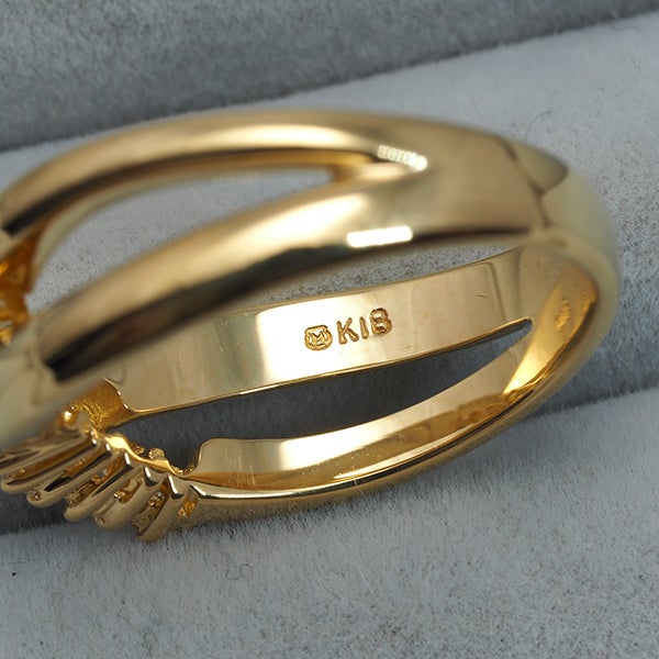 華やかなゴールドの煌めきをクロスラインで演出したミキモトのリング。メインに並ぶ7石の厳選ダイヤモンドの眩く上品な輝きと共にお手元にエレガンスを与えてくれるジュエリーですよ。
