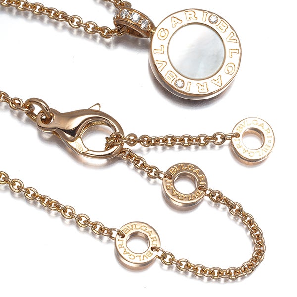 ブランドのダブルロゴにシェルの美しい輝きを飾った ブルガリブルガリコレクションのネックレスです。
