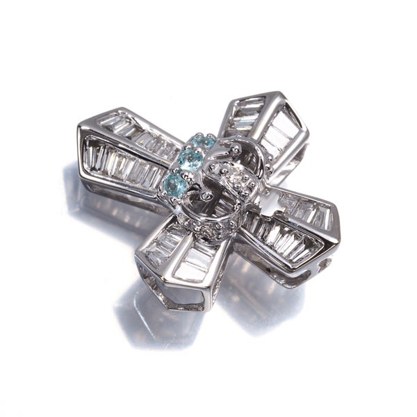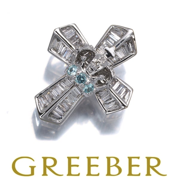 【スプリングキャンペーン!11%対象商品】笠原真寿美 ペンダントトップ ダイヤ ダイヤモンド 0.34ct パライバトルマリン 0.04ct クロス K18WG 【中古】BLJ