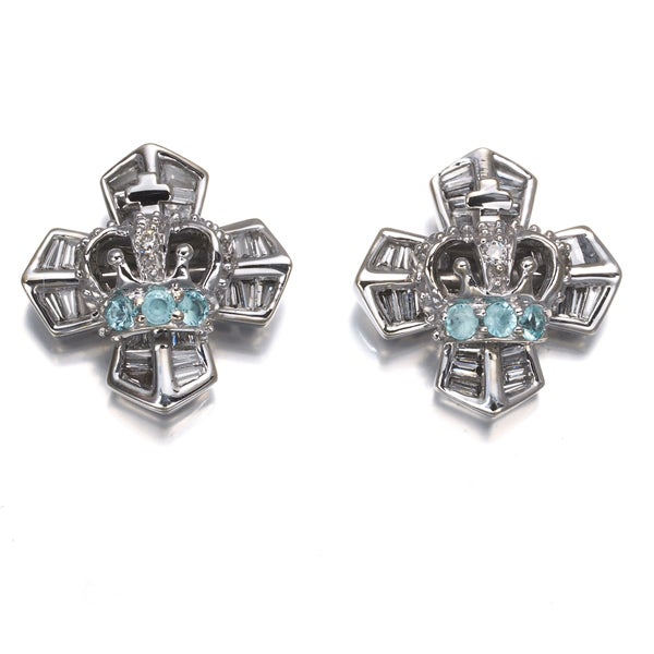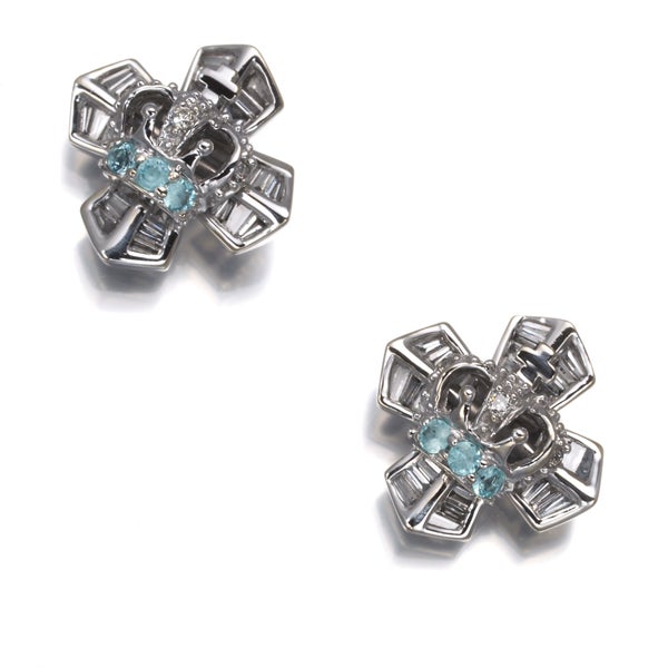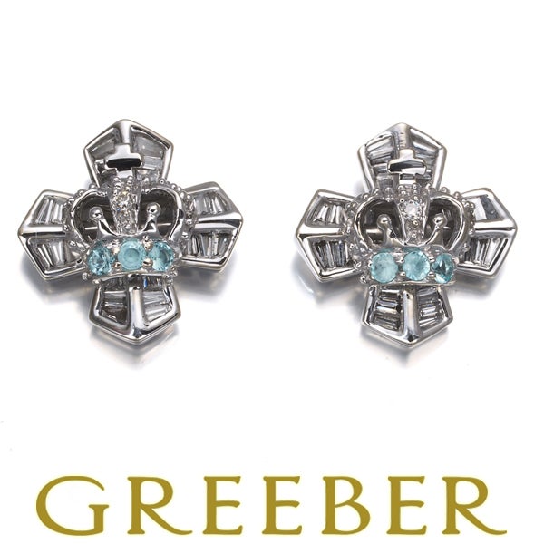 【スプリングキャンペーン!11%対象商品】笠原真寿美 ピアス ダイヤ ダイヤモンド 0.42ct パライバトルマリン 0.08ct クラウン クロス K18WG 【中古】BLJ