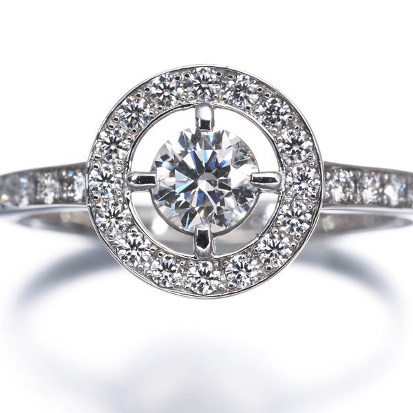 メインに飾られたのはごく僅かな内包物しか見られない透明感から溢れる眩い輝きをお楽しみいただける 0.3ctアップの1石。上質メレダイヤの煌めきで包み込んだ ベリテのスタイリッシュなダイヤモンドリングです。
