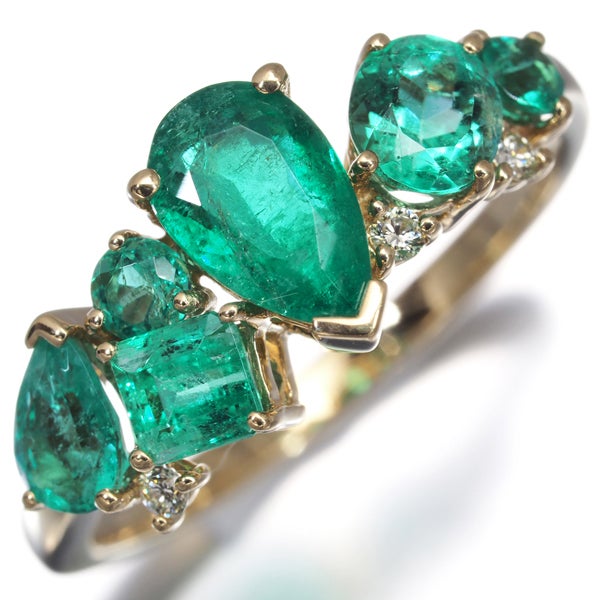 【ポイントアップ対象商品】GSTV リング エメラルド 1.55ct ダイヤ ダイヤモンド 0.04ct ペアシェイプ 4種カット16号 K18YG【中古】BLJ/GENJ
