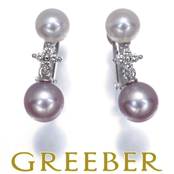 【スプリングキャンペーン!11%対象商品】TASAKI タサキ イヤリング パール 真珠 5.3-6.2mm ダイヤ ダイヤモンド 0.06ct フラワー 揺れる K18WG/K14WG【中古】BLJ