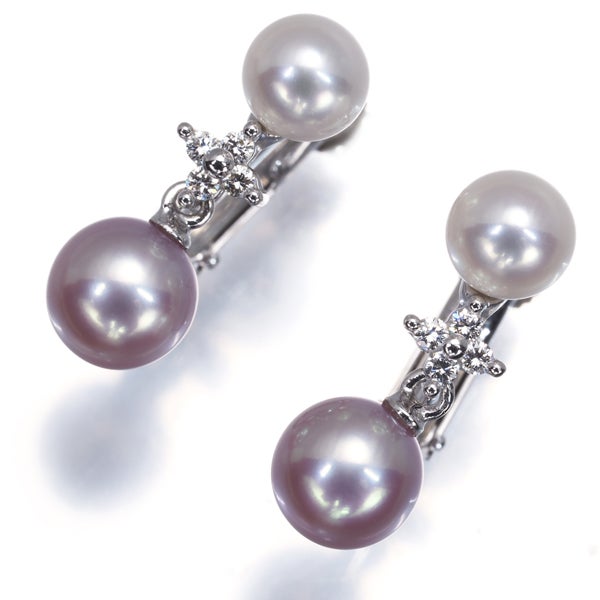 ホワイト系の明るいお色味に1滴のピンクを注いだかのような美しい彩りが揺れ艶めく タサキ厳選アコヤ真珠の素敵なイヤリング。上質ダイヤモンドの瑞々しさを上品に添え 装いの耳元をエレガントに演出してくれます。