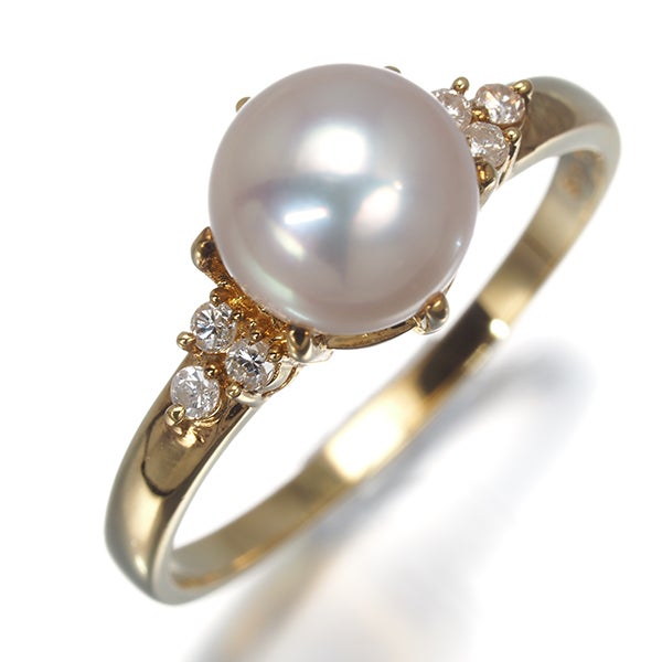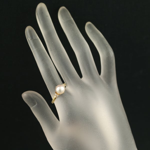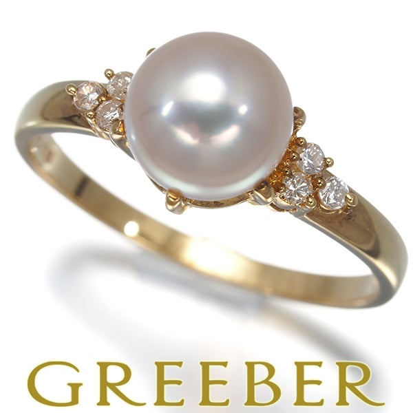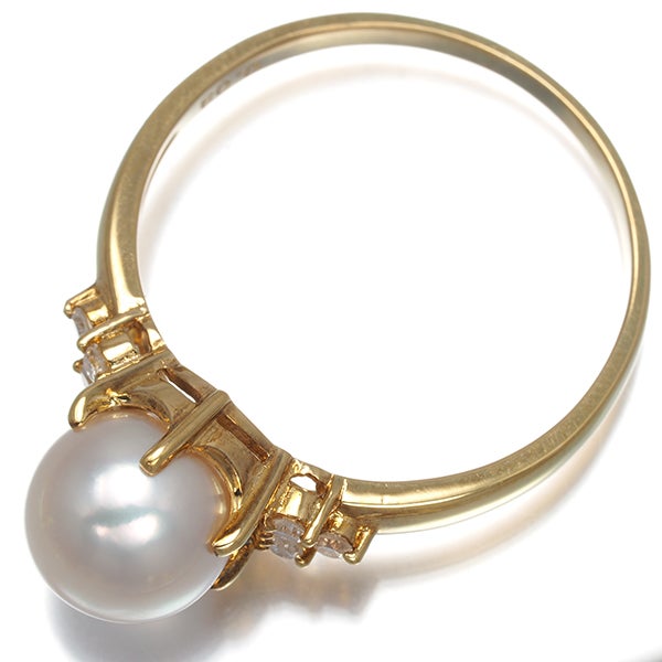 TASAKI タサキ リング パール 真珠 7.6mm ダイヤ ダイヤモンド 0.08ct 16号 K18YG 【中古】BLJ