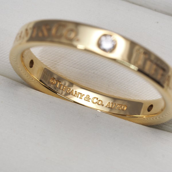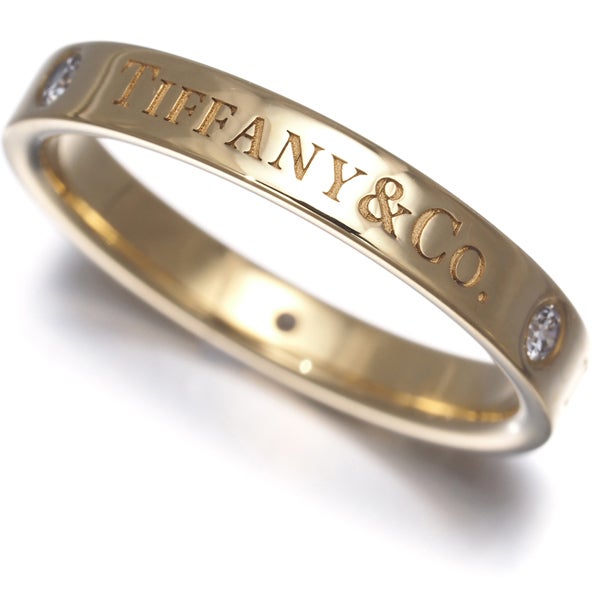 ティファニーのブランド名に飾られた厳選ダイヤが美しい輝きを放つ フラットバンド ダイヤモンドリングです。
