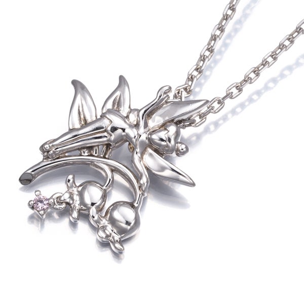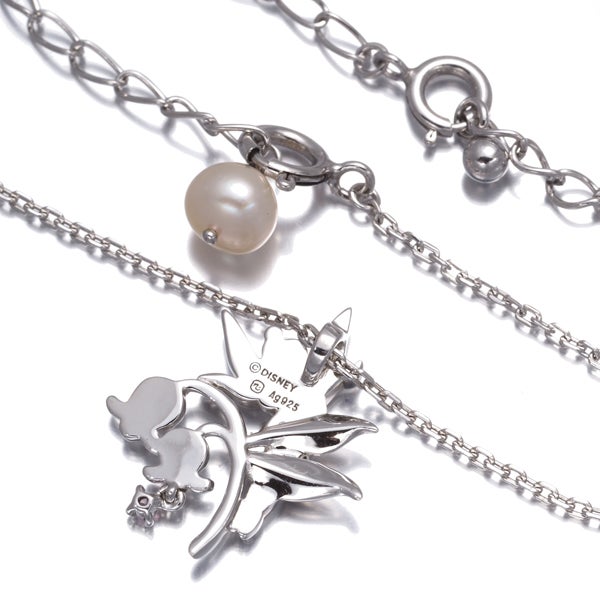 花々のモチーフにディズニーの人気キャラクター ティンカー・ベルが舞う素敵なネックレス。花露のように煌めくキュービックジルコニアの彩りが 可憐なニュアンスで胸元に揺れます。