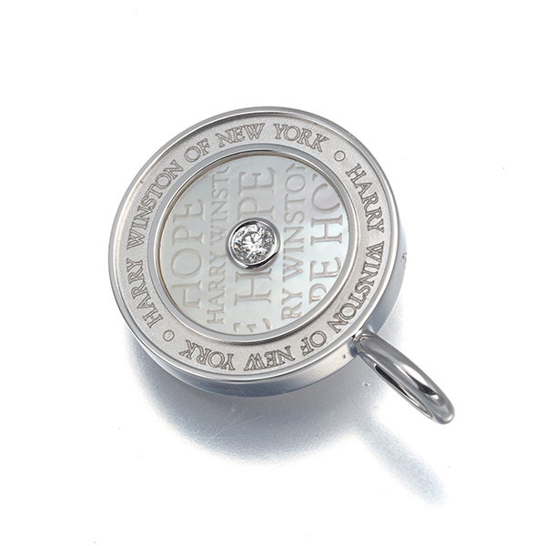 神秘的なシェルの光沢に刻まれた "HOPE " の文字とメゾンのネームが厳選ダイヤモンドの輝きとともに 装いをエレガントに飾ってくれる ハリーウィンストン ホープコレクションの美しいペンダントトップです。
