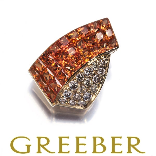 【スプリングキャンペーン!11%対象商品】レ・エッセンシャル ペンダントトップ オレンジサファイア ダイヤ ダイヤモンド ミステリーセッティング K18YG 【中古】BLJ/GENJ