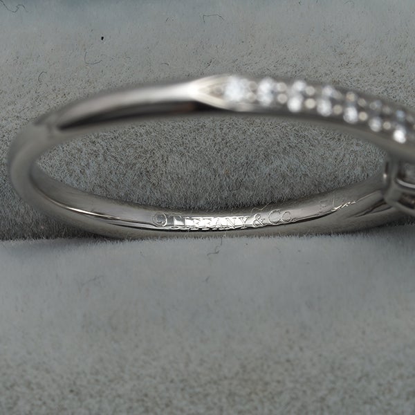 中央に向かって繊細に細くなる美しいデザインに厳選ダイヤが輝きを放つ ティファニーのハーモニー ダイヤモンドリングです。