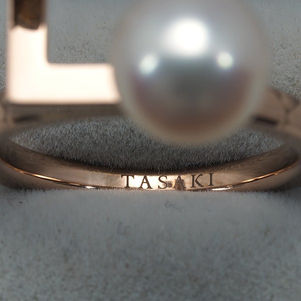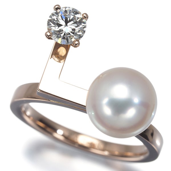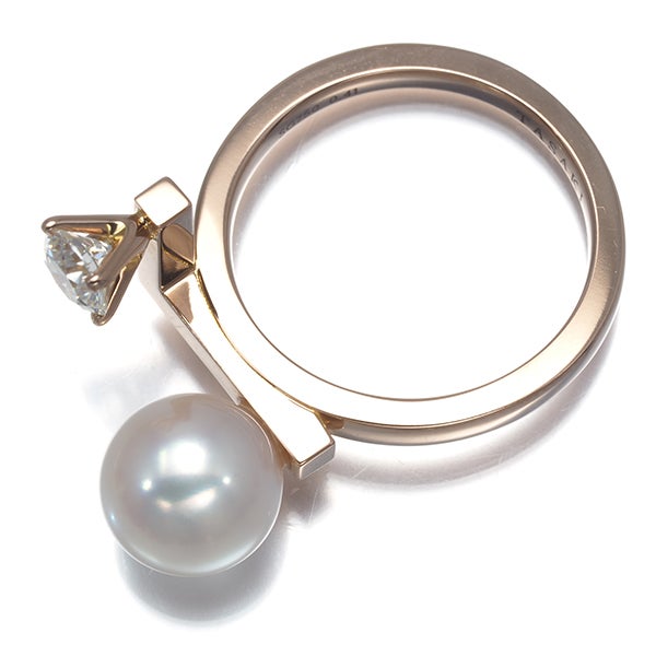 タサキ厳選アコヤ真珠の美しい輝きを音符のように描いた 遊び心溢れるジュエリー。装いに優しいメロディーを奏でてくれそうな バランスノートリングです。