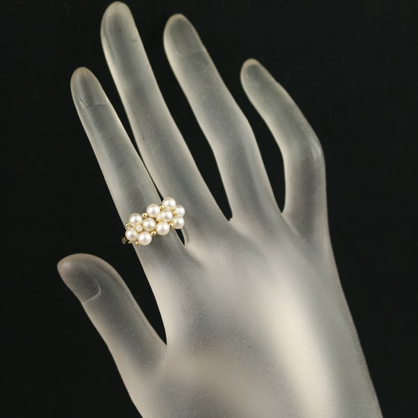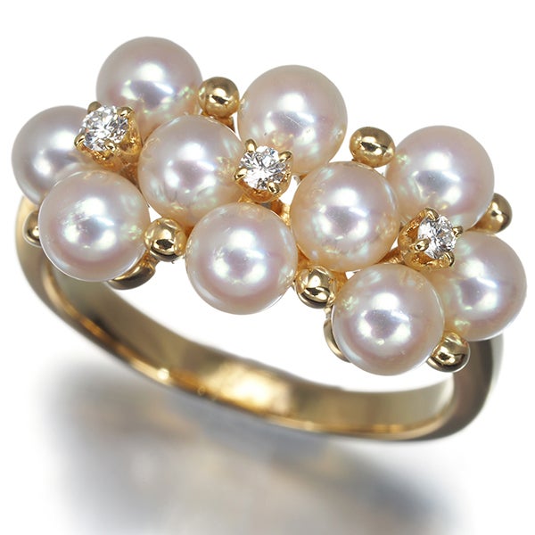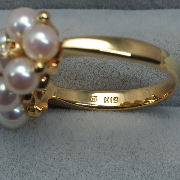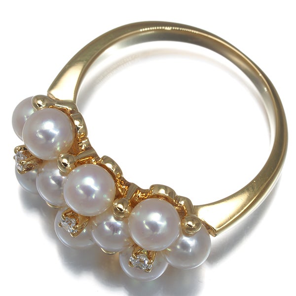 ミキモト リング ベビー パール 真珠 4.0mm ダイヤ ダイヤモンド 9号 K18YG 【中古】BLJ