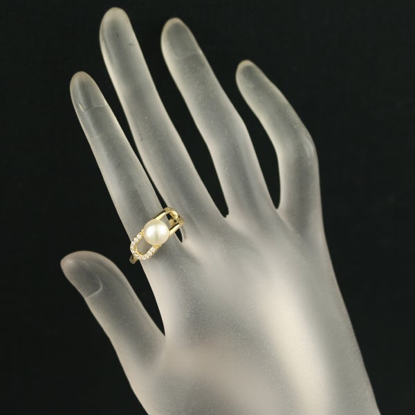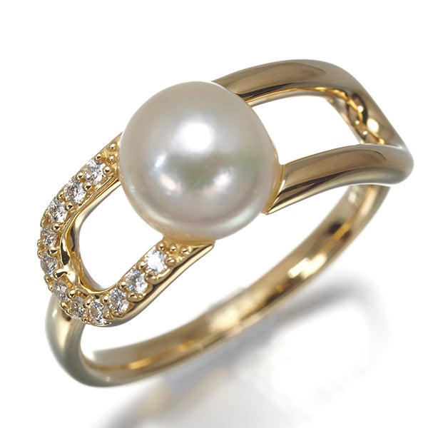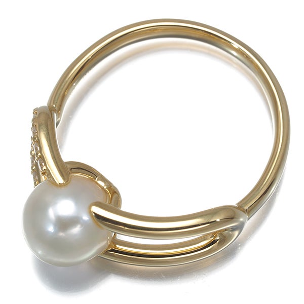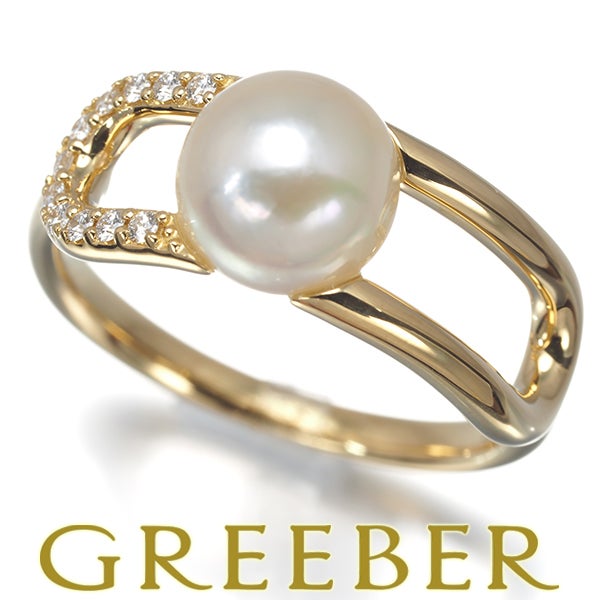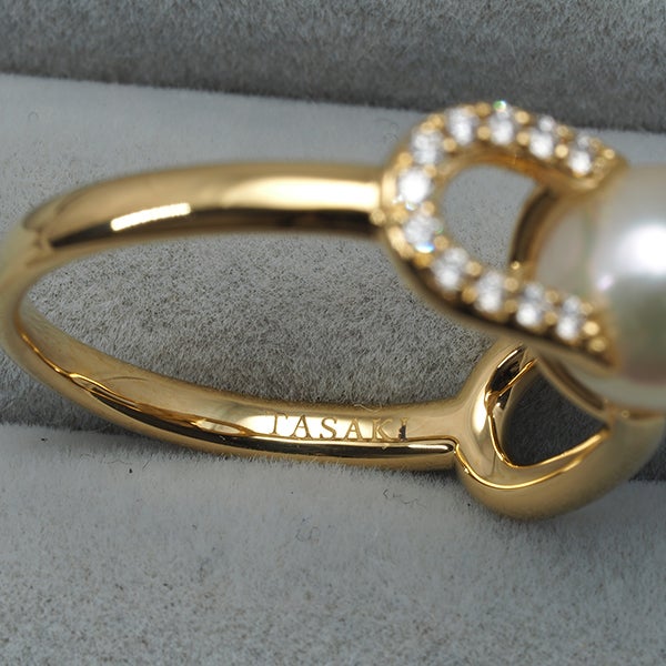 TASAKI タサキ リング パール 真珠 7.7mm ダイヤ ダイヤモンド ファインリンク 13号 K18YG 保証書【中古】BLJ